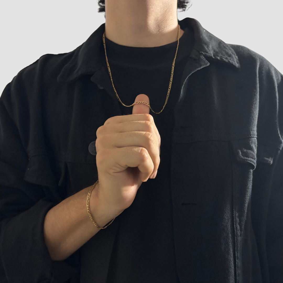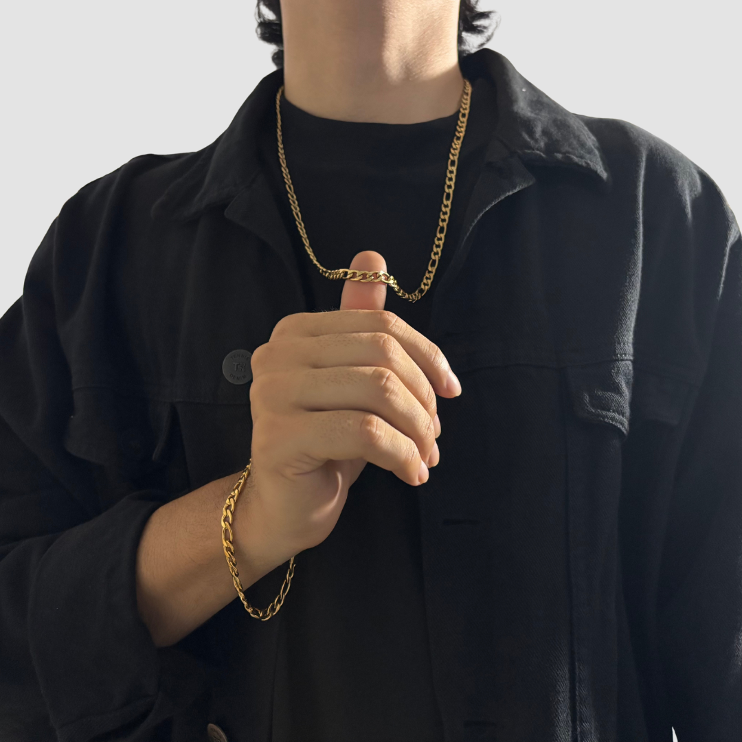 Oro Laminado Italiano 18K, diseñadas para hombres que representan fuerza, carácter y autenticidad. Cada cadena y pulsera está elaborada con una capa gruesa de oro 18K sobre una base resistente, garantizando brillo, durabilidad y elegancia.
